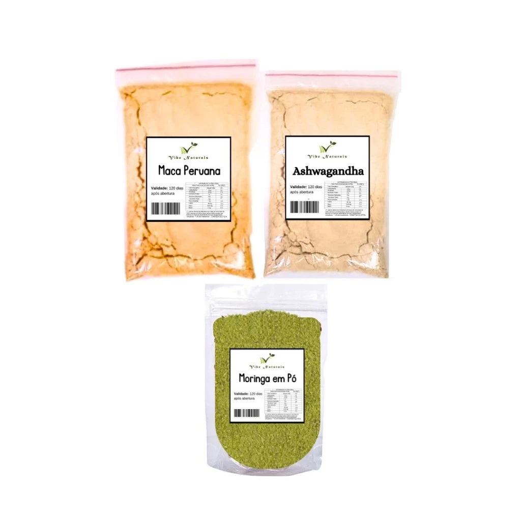 Esse combo reúne 3 superalimentos em pó que vão turbinar sua energia, foco e disposição de forma natural: